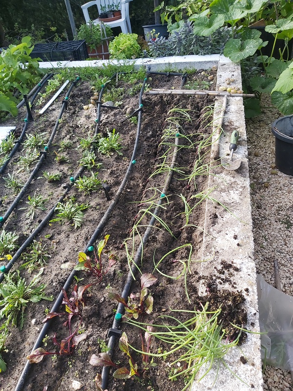 Red onion planted. Too close together I know but I thin out and use as Spring onions.