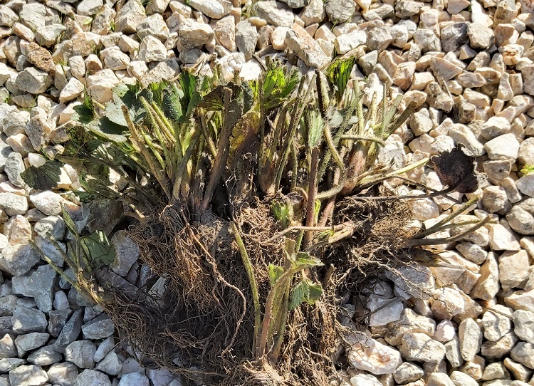 I was delighted to see bundles of strawberry plants at the market and although not on this month’s shopping list …as they say: A bird in the hand.