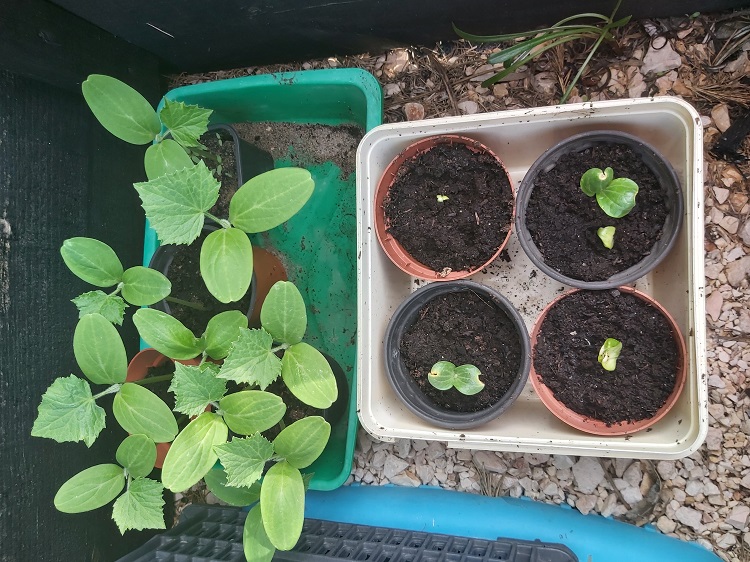Cucumber and courgette plugs are no longer for sale at the market so I decided to grow my own from seed. So far so good!