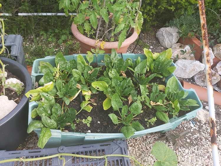 Spinach. Fingers crossed the slugs and snails decide to share. I love spinach and it’s great to walk into the garden and pick a handful of leaves to add to an omelette or salad.