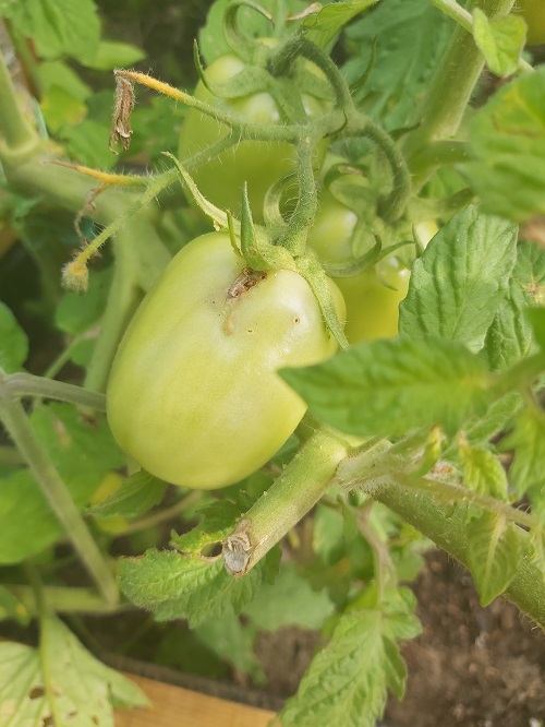 This week I was doing a happy dance and even backflips because the Cacho tomatoes I’d planted as plugs in September were bearing lots of fruit. No blight, nada. I turned my back for a couple of days and bugs decided to bore into my precious tomatoes and take up residence. GUTTED! Apparently, they are fruit flies, and there is nothing I can do other than pick the tomatoes and either ripen them off or make green tomato chutney. To say I am pig-sick is an understatement. If anyone has any suggestions on how to irradicate/deter fruitflies, my ears are flapping in anticipation.