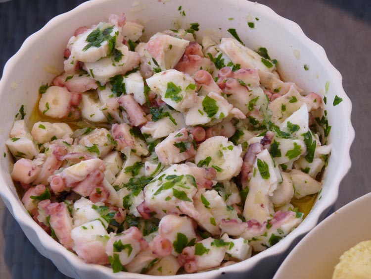 We went to a BBQ last week and the hostess served this delicious Portuguese Octopus Salad. She was fascinated by the fact I was keen to photograph her cooking and share with the world. Enjoy!