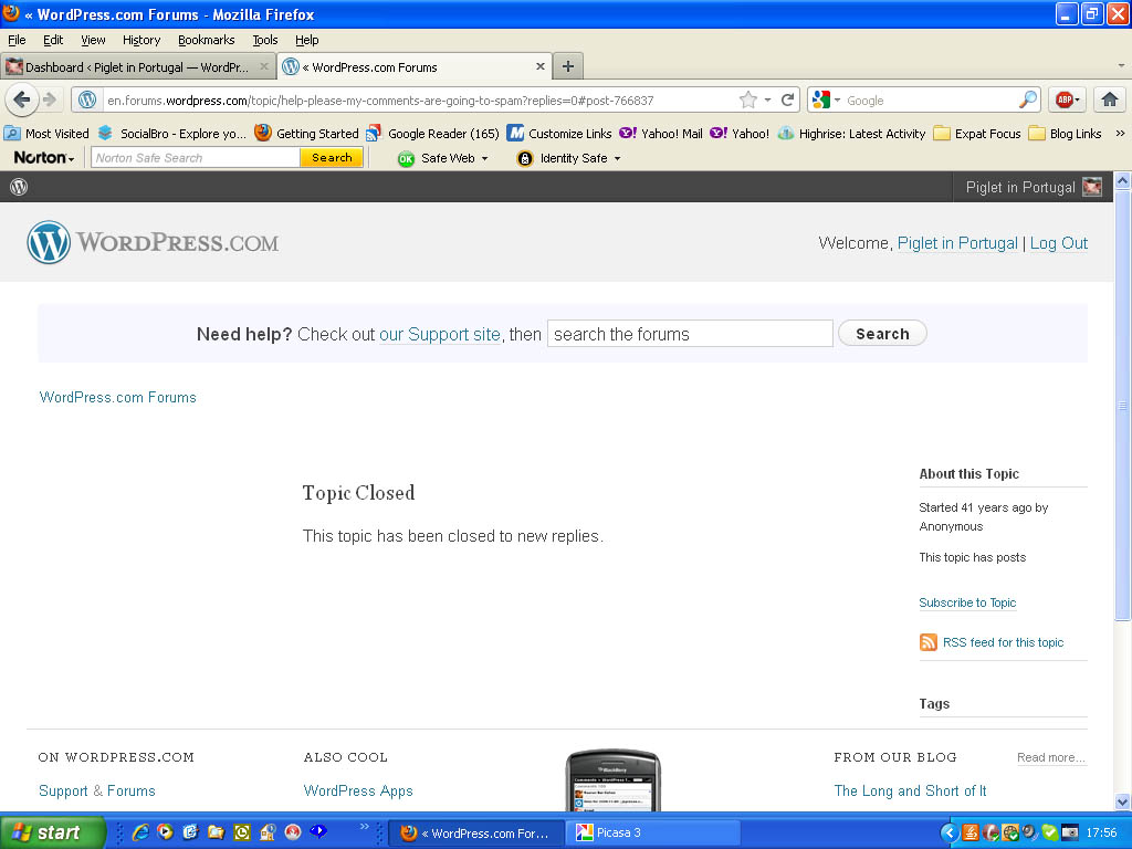 In desperation I created a topic asking for help on the WordPress forum, this also immediately disappeared and only a “Topic Closed” remained. I tried several times and nothing. I then emailed admin explaining the situation, still no response! Bwah Bwah!
