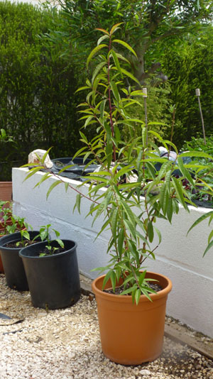 I was given a little peach tree (sapling) last year which had seeded from a stone thrown onto a friend’s compost heap. I repotted the little fellow in the spring into a larger pot and it’s now growing like a weed. Apparently it is an American variety of peach tree which is disease resistant. Good, poor little thing it needs some luck on its side living on Piglet’s plot!