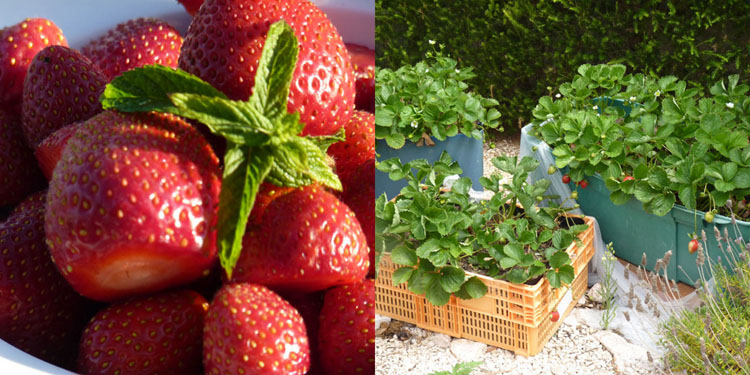 My strawberry plants continue to give me a daily dish of mouth-watering strawberries. Forget the “forced” tasteless strawberries grown in Spain that seem to grace the supermarket shelves here in Portugal, everyone should try and grow their own! You can grow strawberries in a variety of containers from crates to plastic boxes in fact any containers you can lay your hands on. Just make sure you give them adequate drainage and good soil!