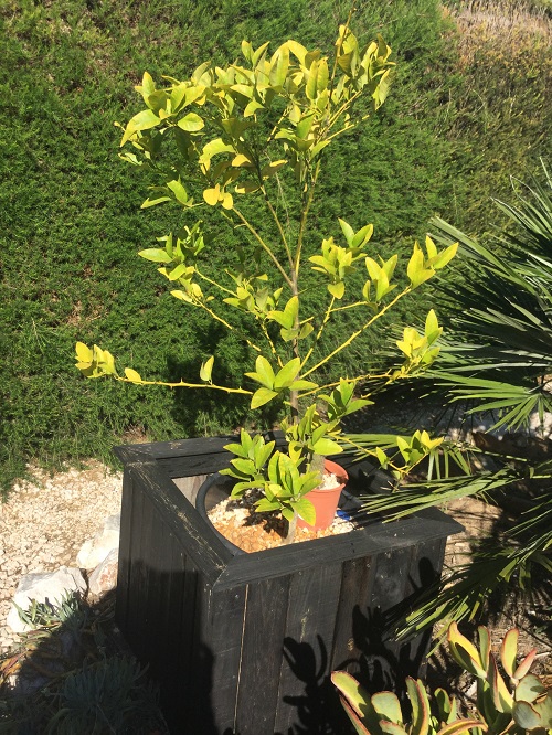 2. The yellowing leaves on the lemon tree could be lack of minerals.