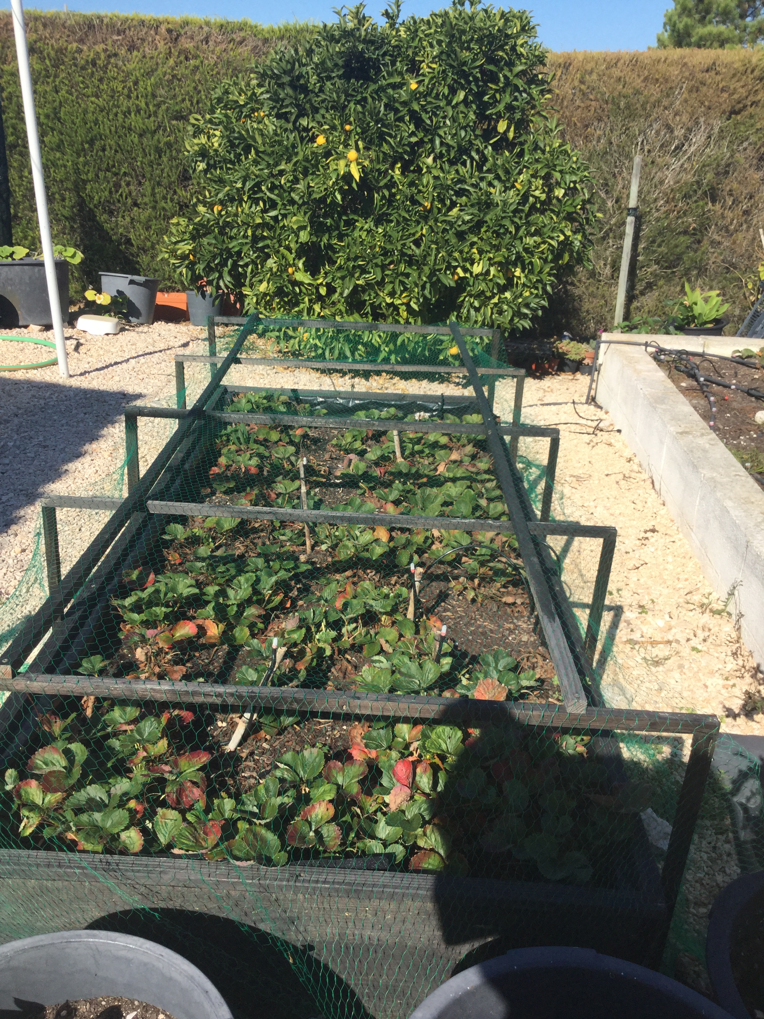 The strawberry plants are looking tired, hungry, and thirsty. After the great start at the beginning of the season with huge strawberries, I wonder if we should dig them up and start again, or just cut right back and fertilize the soil?