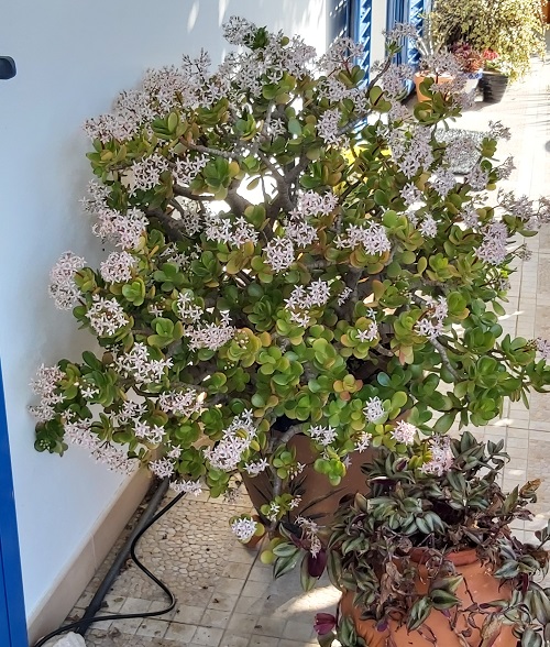 Wow, that Agave flower looks like the tentacle of a giant creature coming out of the ground! And now I finally know what jade plants look like in flower – very pretty – I have lots in the house here, I can’t stop myself from taking cuttings, but of course it’s not warm enough for them to flower!