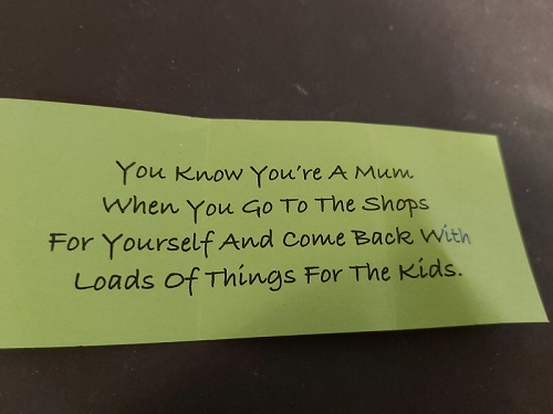 The biggest smile came via a simple Mother’s Day present. A jar of smiles for Mum’s Yep, that’s right. the jar contained folded notes each with an inspirational quote, one for every day of the week for the next month.