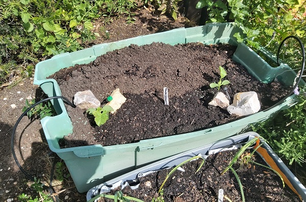 This is the first time I’ve tried minibel cherry tomatoes. So far the plants look compact and healthy. They are meant to be bushy … we will see. 🙂