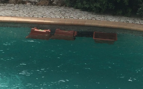 And when we returned after my hospital appointment we were greeted with all the empty pots in the pool AND the garden chairs and little coffee table.