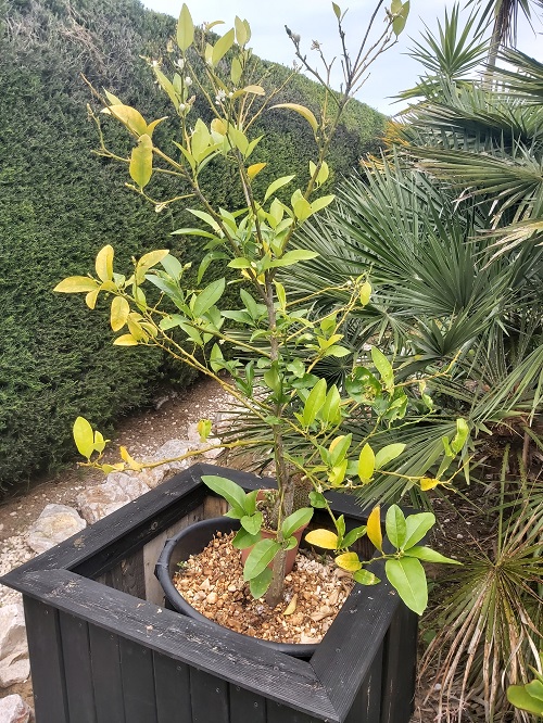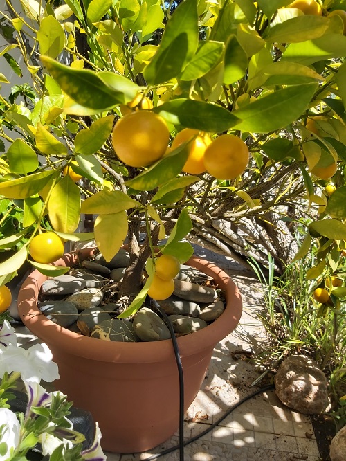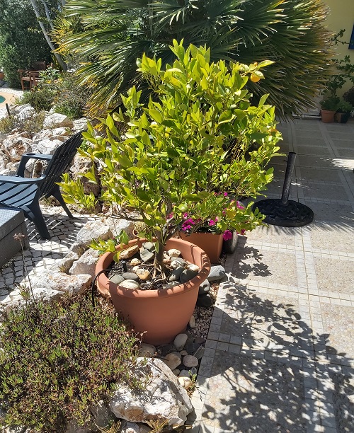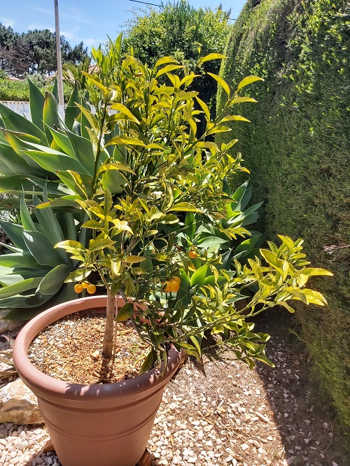 2. For your citrus fruits, you already know that, it’s necessary that you give a fertilizer regularly, every 15 days as much as possible from spring to autumn. This fertilizer must have an effect against chlorosis since you have yellow leaves. Or change the soil of the pot regularly because it must be tired. All my citrus fruits are potted and I change the soil every year. It’s a good time right now (here).