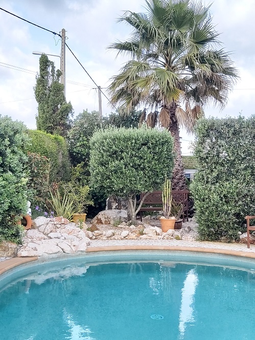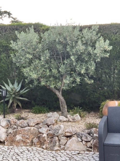 I know this olive tree is pruned incorrectly. Ho hum, like the third olive tree below, it never produces olives beyond the size of a peanut even in the pre disease era. I bought them both from a little nursery on the way to Monchique and have since discovered there are wild varieties of olives of which these are one. As we say: I was sold a pup.