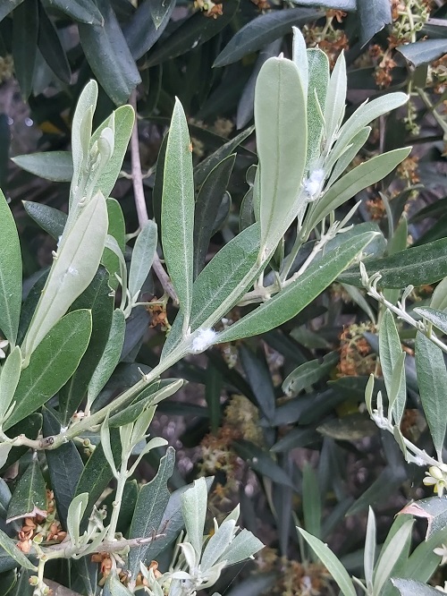 Woolley aphids love my olive trees. Note to self. Spry with washing up liqued. Although some budding YouTuber, did suggest I suck them off with a vacuum cleaner.