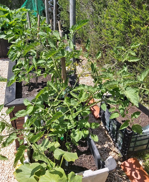 The Mini Bell Cherry tomatoes which got off to a rocky start thanks to me spraying them with the wrong dose of hydrogen peroxide have recovered, thank God!