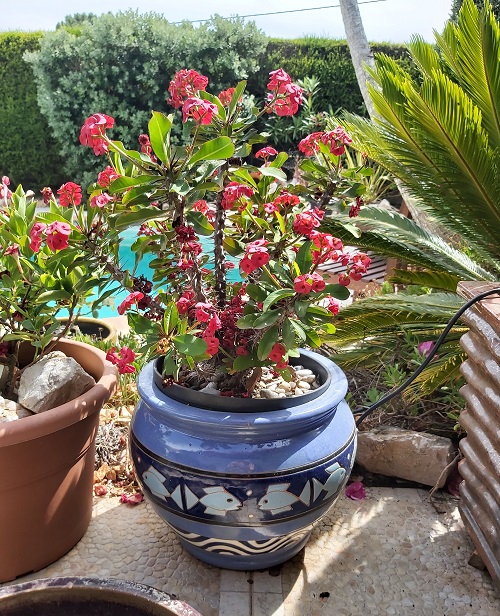 These are the most ‘giving ‘ flowering plants we have. The flower continually throughout the year and withstands the heat and full sun. I first saw these in Lanzorte and wondered how I could smuggle one back to Portugal in my suitcase. No need … I found this one as a baby plant in a garden centre near Monchique. Now I see them everywhere!