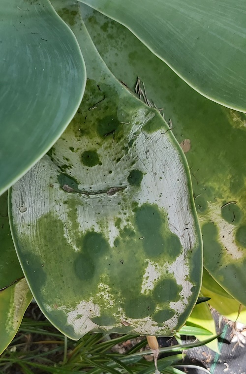 This happened overnight. One day, the Agaves were fine, and the next, the plant developed these strange marks on the leaves. I asked on our gardening Facebook Group, and apparently, other people reported the same issue. AND we are not even in the same area. Apparently, this can happen when there is a combination of wet and sun. A form of leaf burn. If anyone else has any further suggestions, then I’m all ears.