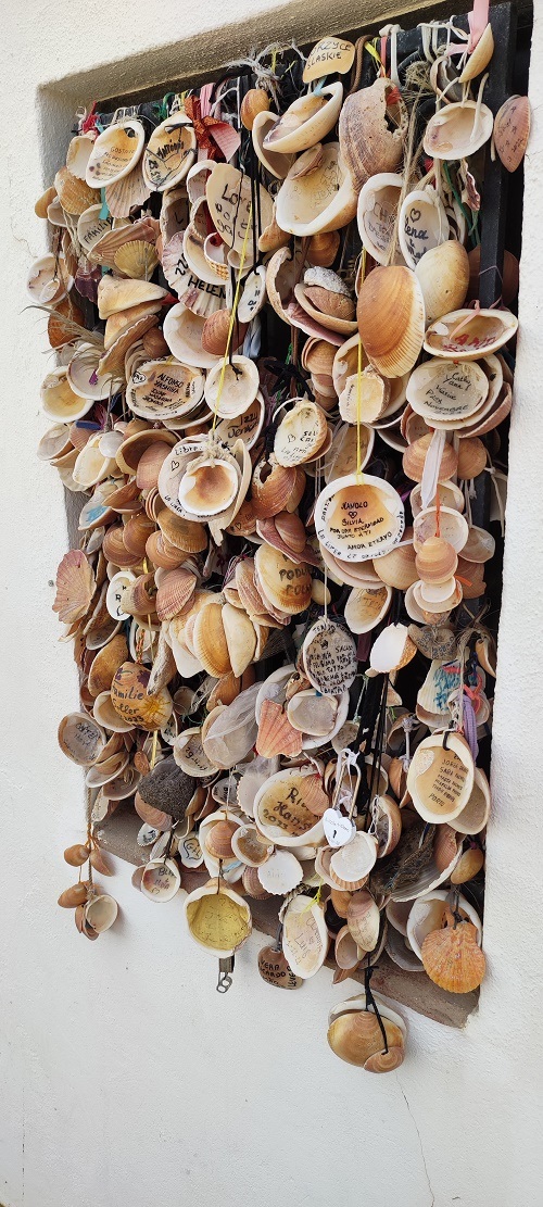 As I approached the chapel, I was intrigued to know why the nearby trees were festooned with strings of shells and then more, which covered the windows. Each shell is personalised with a person’s name and date.