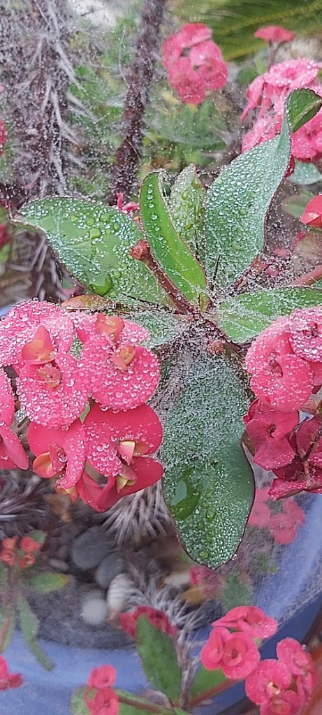 The Christmas orange tree (although it looks more like a bush) continues to thrive … looking at the oranges, I think we will be harvesting long before Christmas.