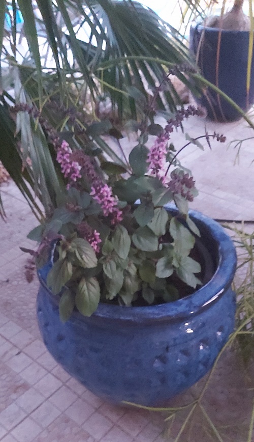 I went out to buy normal green basil and returned home with a purple variety. Apparently, the garden centre has no idea when and if the standard basil will be delivered. Sigh. I think it’s time to break open a packet of seeds, as I’ve been looking for weeks.