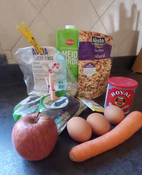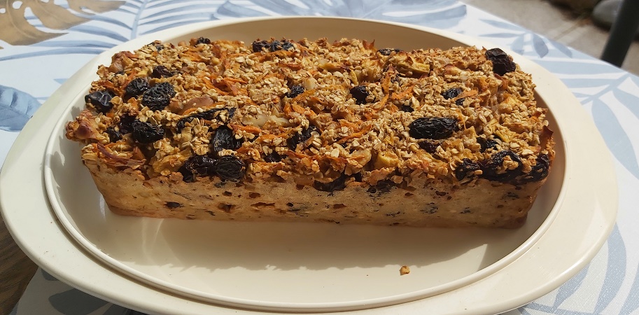 Bake at 360F for 180C for 45 – 50 mins. NB note to self for future reference. Allow an hour as my oven is not accurate on temp and there are some variables such as size of apple and carrot. Check with a skewer after 45 mins to see if further cooking is required.