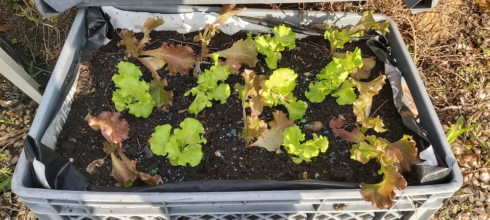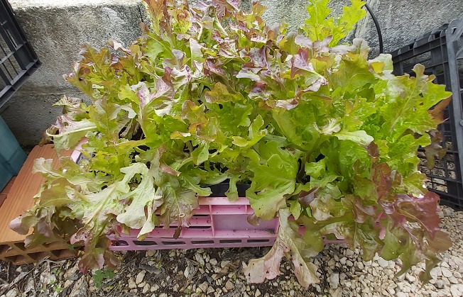 Lettuce planted last month. We only pick the young leaves and not the whole lettuce.