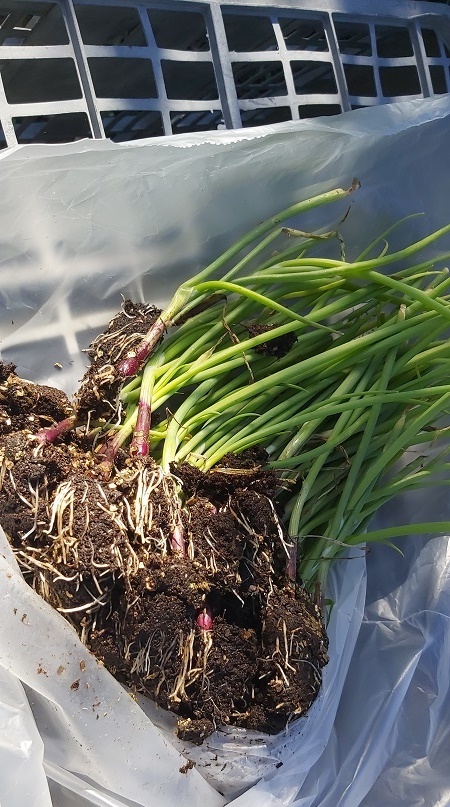One bundle gave us 17 plants. At €5 per bundle, it is far cheaper than buying individual plants. The lady at the market advised us to trim the roots to about 1.5 inches. Once potted up, I moved them to a sheltered area of the garden until established.