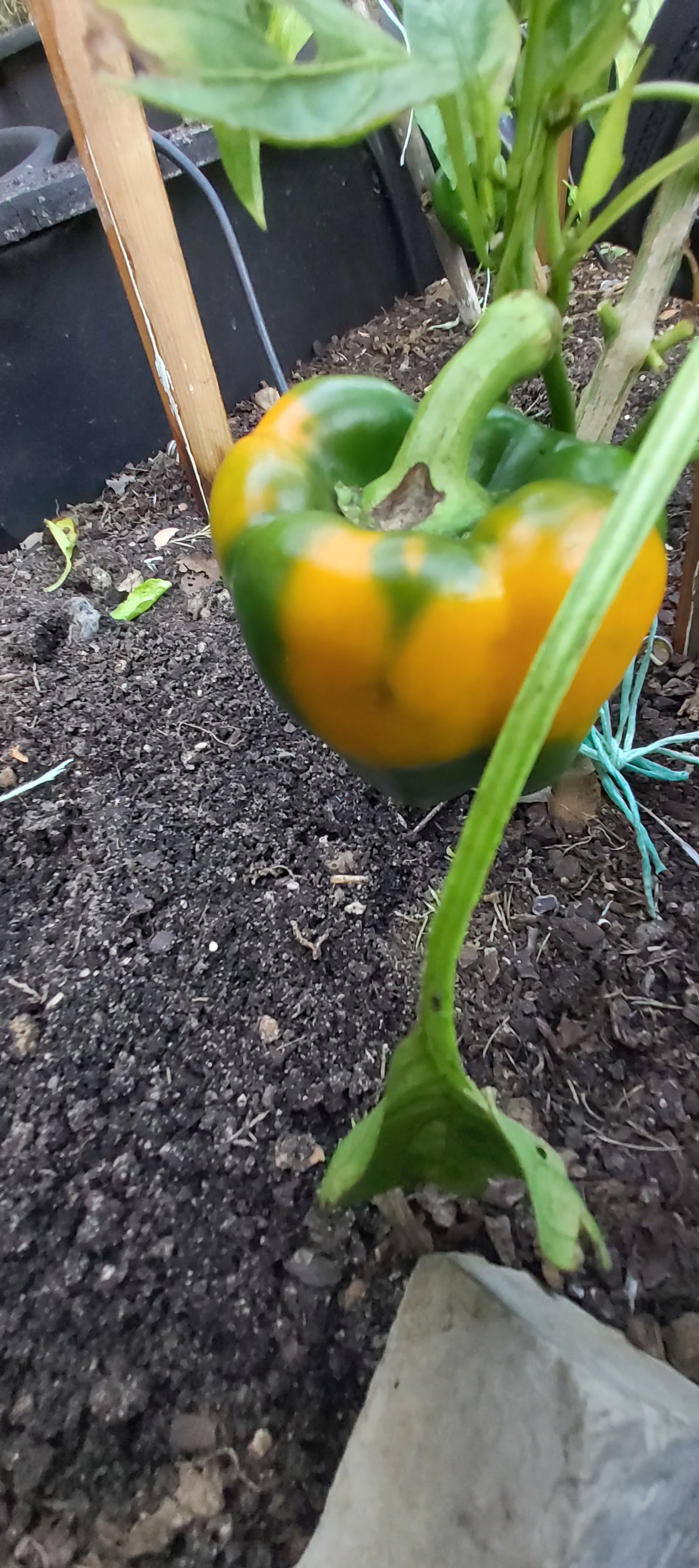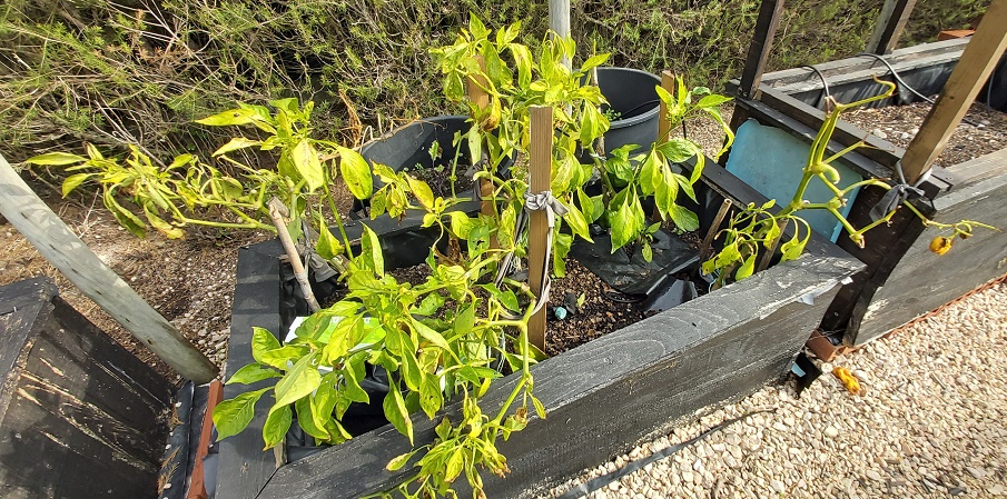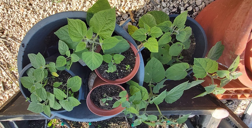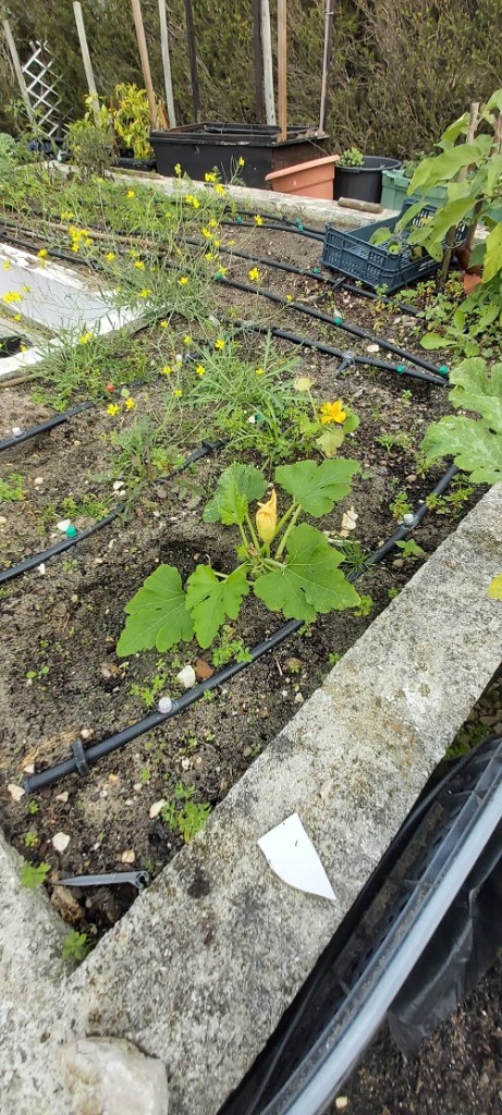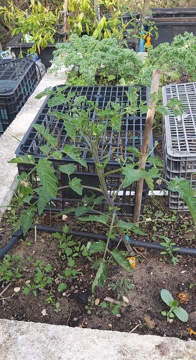 This tomato self-seeded. It will grow or not. Apart from staking it, I’m leaving it to fend for itself. Hopefully, we will have tomatoes by Christmas. I have heard that self-seeded stock is stronger. We will see.