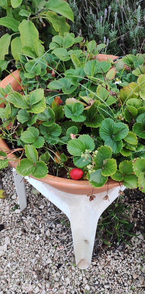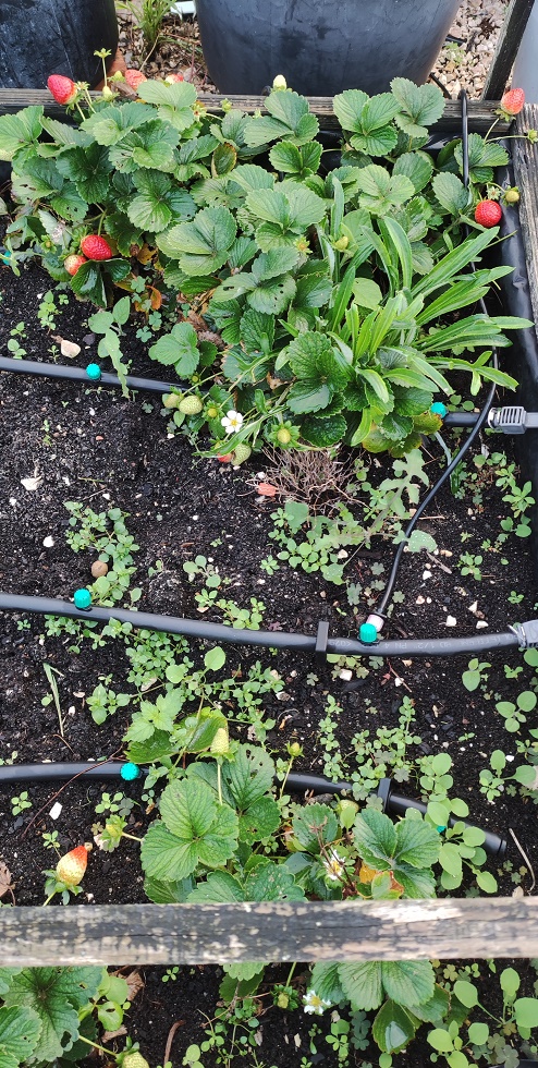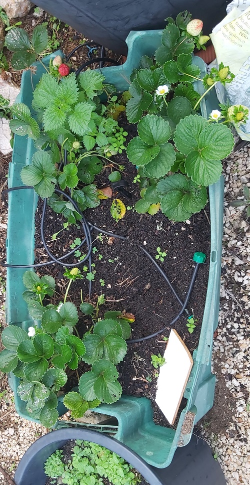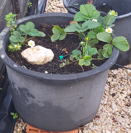 After the disastrous start to the strawberry season last year, when the earth in the blue strawberry tower became infected with hundreds of fruit flies, I never expected to enjoy strawberries from the plants I rescued. (the secret – feed with liquid manure)