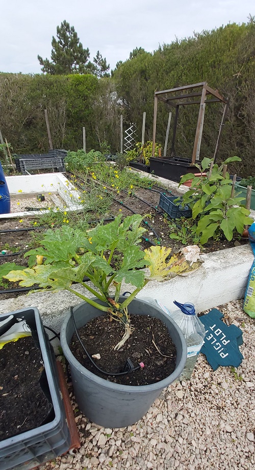 What can I say? I planted these from seed, and ever the optimist, I hoped we would enjoy courgettes into the winter months. Wrong. The baby courgette withered and died. I removed the plant growing in the pot but have left the one in the raised bed. Maybe it will surprise me.