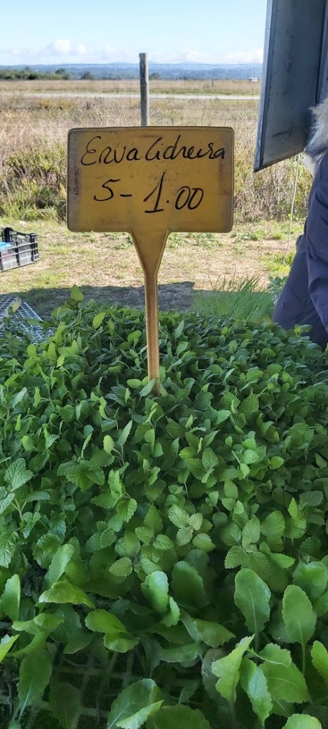 I am trying a new herb, Erva Cideira. While it’s okay to ask questions in Portuguese, it’s not so great if you don’t understand the answer. Mr. Piglet and I deduced it is to make tea … we think. I also bought hortelã, which I deduced from the smell of mint.