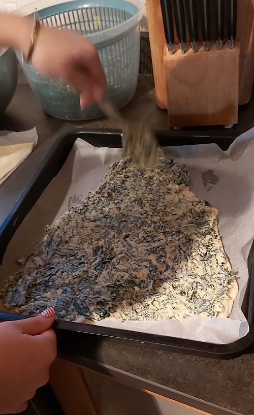 As part of my drive to step outside my foodie comfort zone, I searched Pinterest for some Christmassy ‘aperitivo’ ideas and found this Christmas Tree cheese and spinach breadsticks. Great. I had fresh spinach in the garden, begging to be eaten before the slugs and snails ate it all.