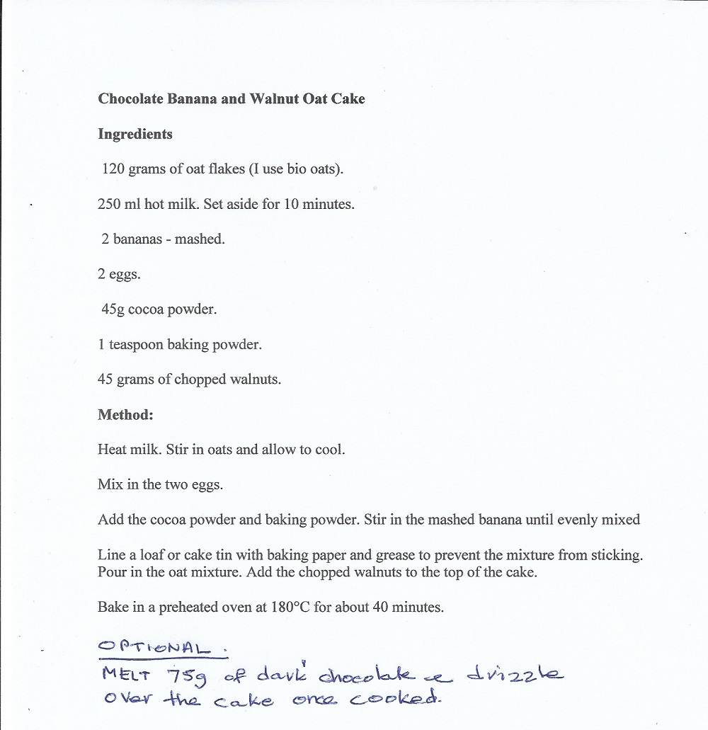 The chocolate, banana, and walnut oat cake tasted AMAZING! Not too sweet. Perfect. Do you have any ‘oaty’ recipes to share?
