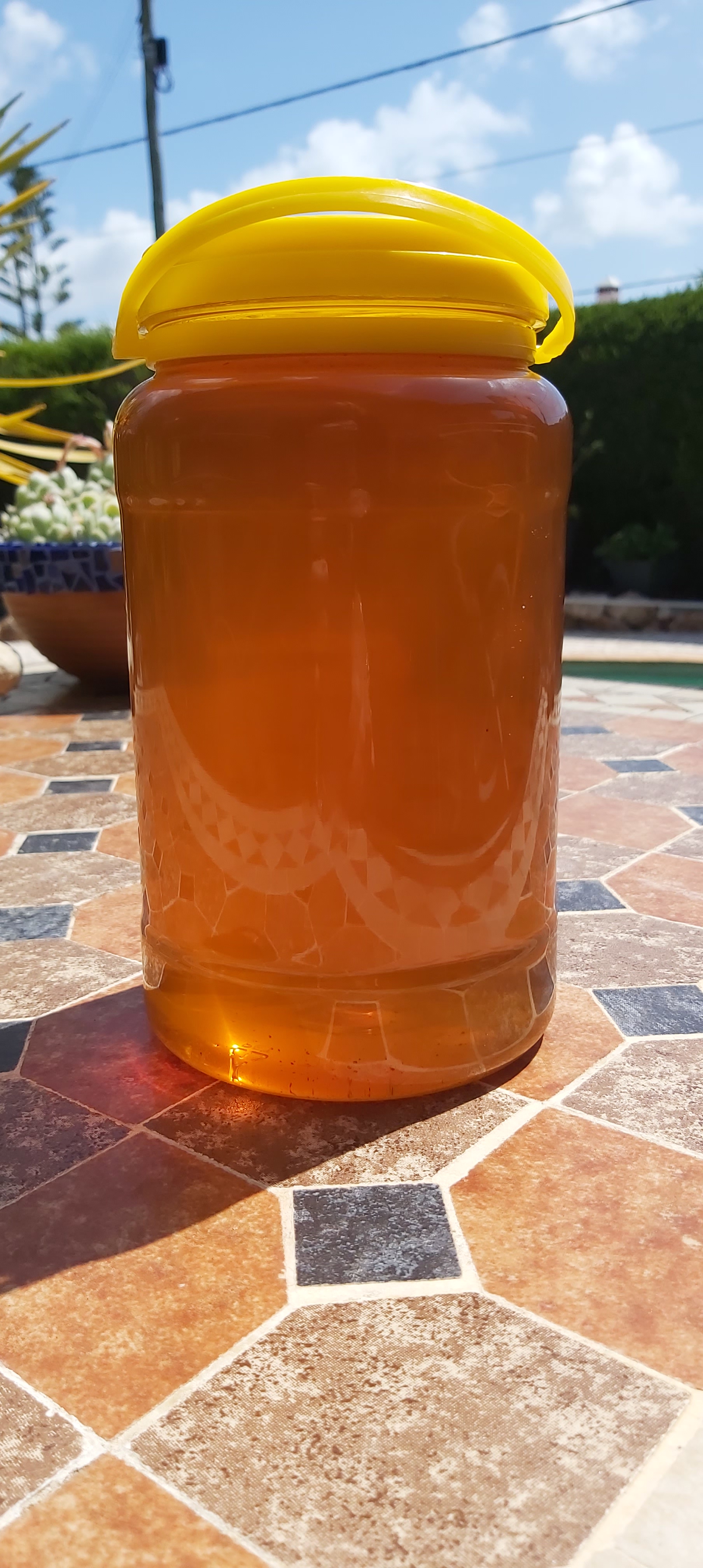 When the guy who cuts our monster hedge stopped by to check when we next required his services, we asked for more honey. … Let me rewind …. He is a beekeeper, and the honey is local, so it’s good for pollen allergy. We asked in our best Portuguese for a large pot, 1kg. We thought he understood. WE all nodded and smiled like nodding dobbins. Late the following evening. Ding Dong. HE arrived all smiles at our front gate holding the largest jar of honey we’ve ever seen. 2kg!