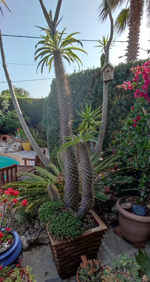 Very pretty Madagascar palm! I love it! (and otherwise, cannas like to be packed into a pot to flower: it’s like Agapanthus, that’s why it works well for you in a pot)