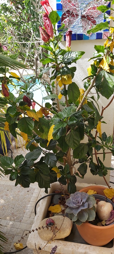 A picture is worth a 1000 words. Hopefully I can revive the hibiscus, but I have culled the other two along with a fern and several others.
