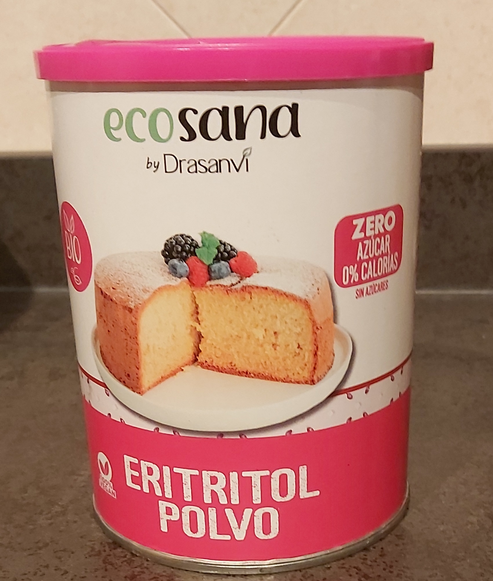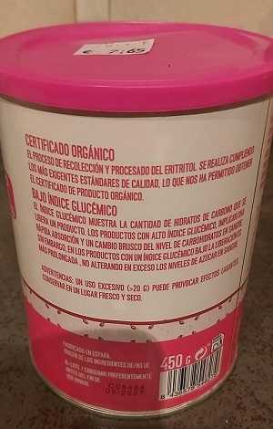 NOW I WAS ON A MISSION TO BUY erythritol, so off to the local shops I went in search of the mystery product. I could not find it in the supermarket. Note: My humble thanks to the VERY unhelpful staff at Intermarche for their assistance, shoulder shrugs and sighs. After a coffee to cool my seeth I walked to the local health shop. Yep: They had the choice of two. One was nearly 14€, at which point I nearly had a coniption until the sales assistant miraculously produced another at 7.60€, which was organic.