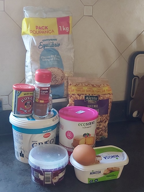 - Mix dry ingredients: In a bowl, stir together oats, walnuts, baking powder, cinnamon, and salt.