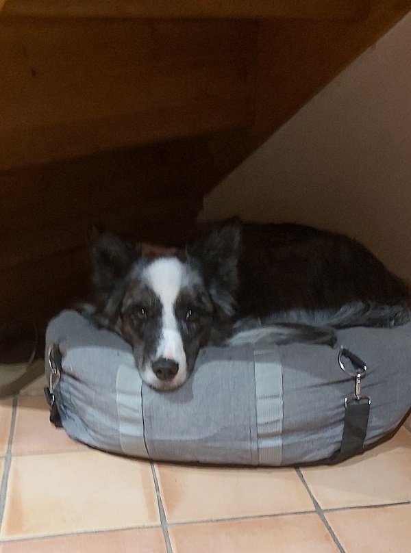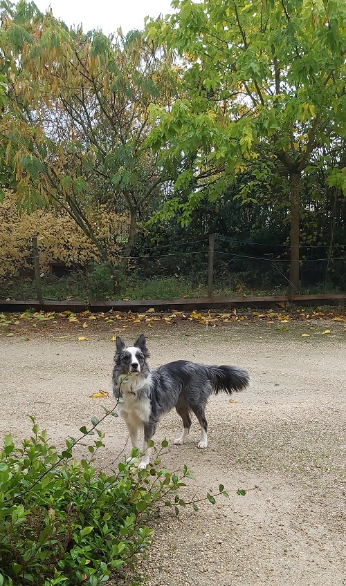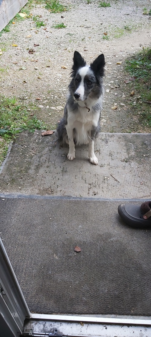 It doesn’t seem possible that their dog —a blue merle —is eight and shows no sign of slowing down. He is such an intelligent dog and loves to play. While I will miss his constant requests to play ball, I won’t miss his strong doggy smell when his long, shaggy coat gets wet.