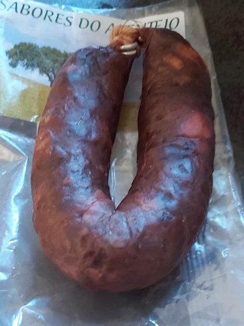 Sausages, chorizo, presunto, onions, red and yellow peppers, tomatoes, garlic, oregano, pepper, salt and tomato pulp.