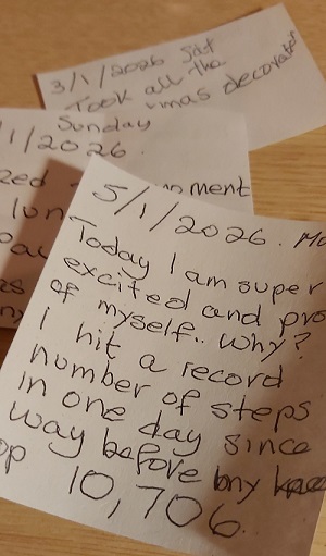I don’t intend to wait until the end of the year to read the notes; I’ll read them as a reminder of what makes me happy, personal achievements, etc., as a pick-me-up when I am feeling low.
