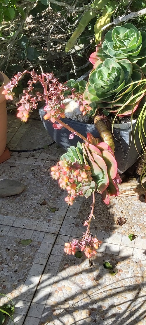 The weather could go either way; flipped the coin and decided to live in the blue-sky, dreaming moment. Donned my gardening gear, took my Six on Saturday pics, and did some gardening. This week, I decided to share six succulents in flower.