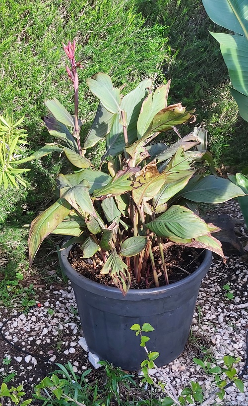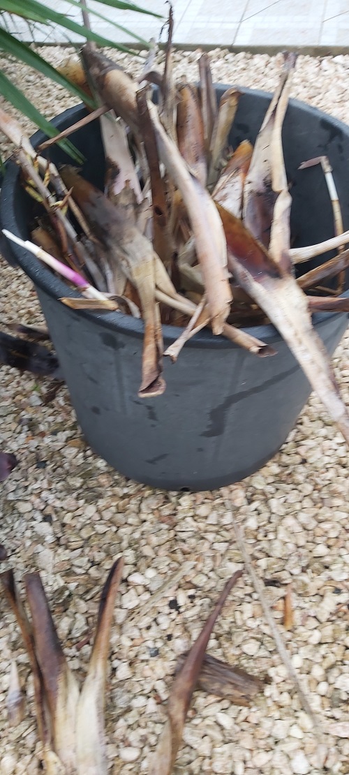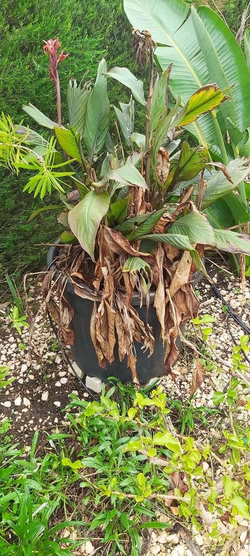 Tuesday’s task (Tuesday) was to clean the Cannas growing in a large pot.