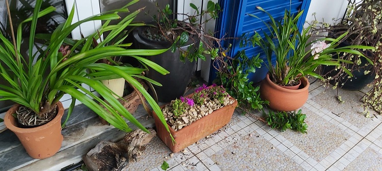 Thursday, despite the continuous, depressing mizzle, I donned my raincoat, repotted them into larger pots, and transferred them to a terracotta trough. The original plan was to plant them directly into the front rockery, but on seeing the sodden roots, I decided to try and destress the plant, let the roots dry out and make a display using one of the troughs I had ‘wombled’ from our local communal rubbish bins. Even though they are under the terrace, they will still get plenty of winter sun (if it ever shines)