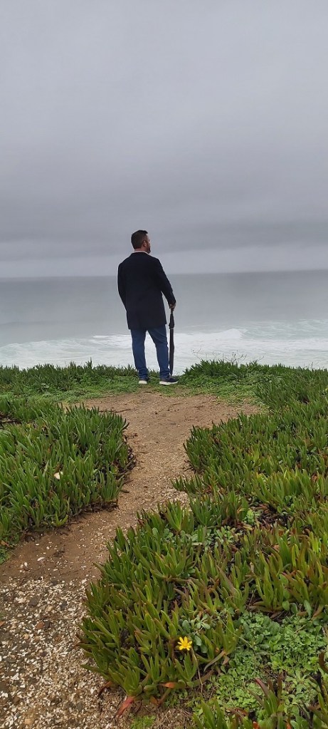 On Thursday, our son, Ian, who had been at a conference in Lisbon since Monday and was due to travel back to the UK on Thursday, took a long weekend and came to stay, and we got to spend quality time together. Never one to sit still, despite the mizzle and threat of heavy rain, we went for a walk to the end of the headland. It was a challenge for me as I’d only walked the track properly once since my failed knee op, but determined not to be left behind, I gritted my teeth and strode out. Much to my delight, I found it relatively easy and have vowed to walk it at least once a week.