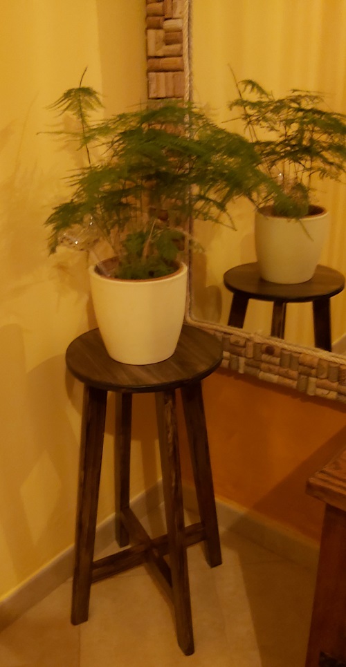 I had a vague idea of what I wanted. More succulents that are tolerant of full sun for the front poolside rockery, and a different houseplant to display on an old stool Mr P found at the rubbish bins and repurposed into a plant stand. He did a great job, yes? I’d rather we get creative and repurpose whenever possible rather than buy new.