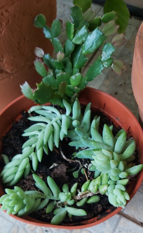 And from another seller, Sedum Donkey’s Tail, and I think a Christmas cactus for just 2€! In fairness, it did look like the weather was about to close, with heavy rain clouds so she was probably relieved to make a sale before the Heavens opened.