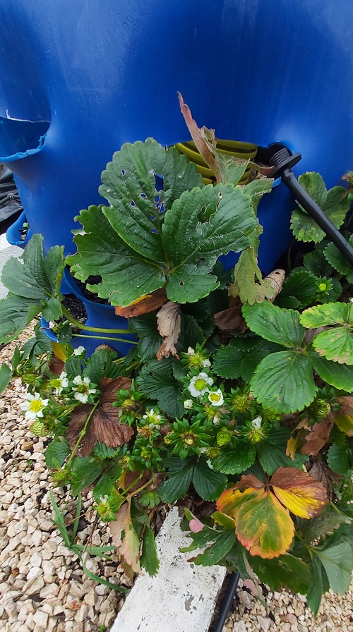 After feeding my strawberries with liquid manure several weeks ago, they are flowering like crazy despite the weather. All we need now is some sun. Lots of sun.