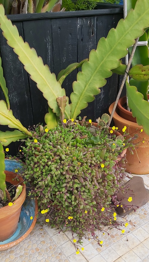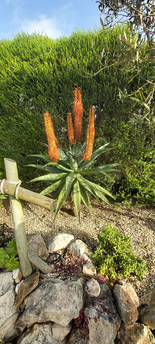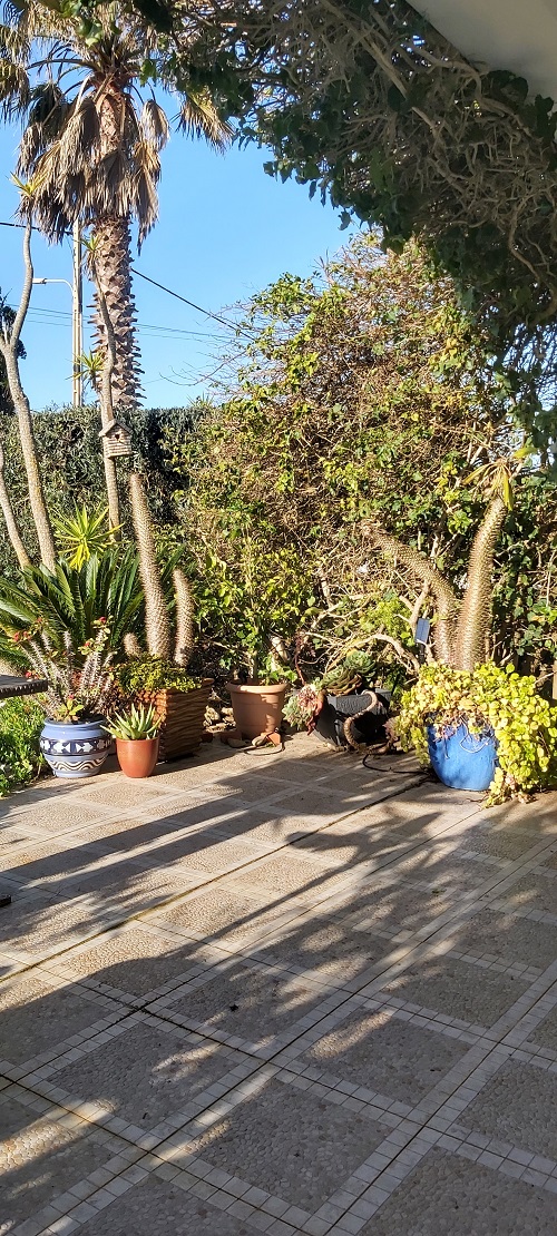 Comparing pictures of different areas of our garden, there have been no significant changes since my January review. The gale-force winds and heavy rains continued for the first couple of weeks, which stripped the bougainvillaea of most of its leaves, and several succulents were pitted with what I can only assume were hailstones. The leaves of the hibiscus were also damaged. The 20th of the month saw a turn in the weather, with temperatures reaching 21 °C for a few days, no rain or strong winds, and even a couple of still balmy days, prompting a visit to the beach. As February draws to a close, I hope we were not lulled into believing Spring had arrived!