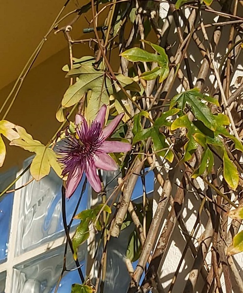 I was surprised to see this passion fruit plant in flower